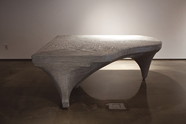 이재효, 테이블-0121-1110=109063, 2009, 스테인리스 스틸, 볼트, 못, 나무, 70×145×25cm